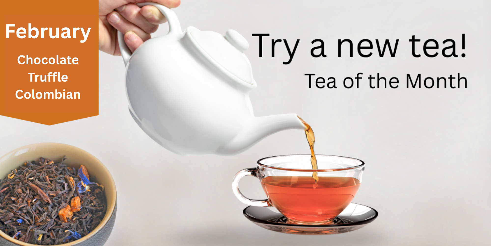 Each month, help yourself to a tea sample from the front desk. Each sample includes steeping instructions, information about the tea, and enough tea for an individual cup or small pot. All teas are served in a tea sachet (which you can just drop into freshly boiled water).